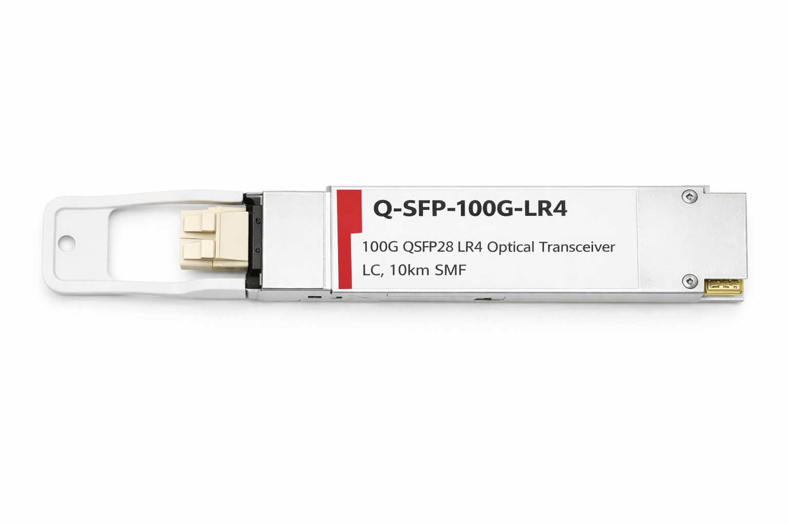 The Q-SFP-100G-LR4 is a hot-pluggable QSFP28 optical transceiver designed for high-speed 100G Ethernet transmission over single-mode fiber. It supports 100GBASE-LR4 operation with LAN-WDM technology and provides a duplex LC optical interface with transmission distances up to 10 km on G.652 SMF. The module also supports digital diagnostic monitoring (DDM) for real-time monitoring of operating parameters and network performance.