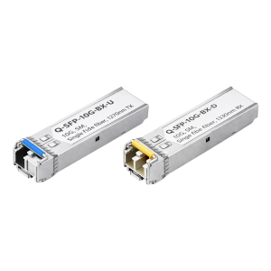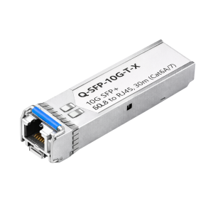 The Q-SFP-40G-SR4 is a hot-pluggable QSFP+ optical transceiver designed for 40-Gigabit Ethernet applications over multimode fiber. It supports an aggregate data rate of up to 41.25 Gb/s using four parallel 10 Gb/s lanes. The module uses 850 nm VCSEL transmitters and PIN receivers and connects through a single MPO-12 optical interface. Transmission distances reach 100 m on OM3 multimode fiber and 150 m on OM4 multimode fiber, making it ideal for high-speed data center networking and short-range optical links.
